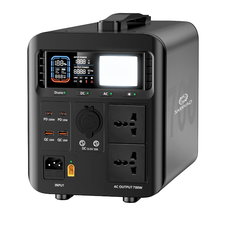 - MULTIFUNCTIONAL OUTPUTS: portable power station features in variety of outputs, 2 x AC pure sinewave output, charges or powers product such as laptop, drones, display monitors, smart phones, car refrigerator, 2 x DC 13.5V/10A perfect for holiday lights, robot vacuum, 4 USB port (2xUSB-A, 2xTYPE-C) for MP3 player, e-reader, tablet, camera and more. Definitely meet your demand to different devices. Tips: please make sure AC device does not exceed 700W.