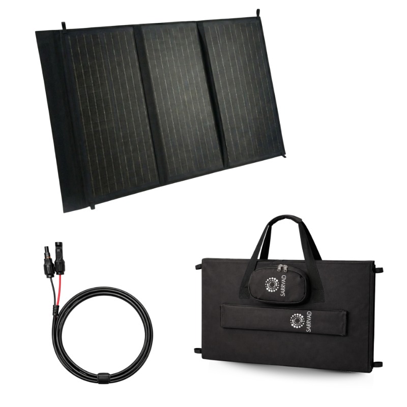 The SARRVAD 100W Solar Folding Panel harnesses advanced monocrystalline solar cells to deliver up to 23% conversion efficiency, ensuring reliable power generation even in low-light conditions. This versatile portable panel features a practical foldable design with a sturdy handle and adjustable kickstands for optimal sunlight capture. DC output ports with MC4 connectors, provide broad compatibility with portable power stations, 12V batteries, laptops and various electronic devices. Constructed with Polyester Fabric material and boasting IP65 waterproof rating, this durable panel withstands diverse weather conditions. The compact, lightweight design makes it ideal for camping, RV travel, trekking, off-grid living, and emergency backup scenarios. Perfect for caravans, boats, and outdoor adventures, this solar panel offers clean, silent power generation. Its universal compatibility supports major brands of power stations and 12V battery setups, whilst the rugged construction ensures lasting performance in outdoor environments. The SARRVAD 100W represents a practical solution for modern adventurers seeking reliable portable power.